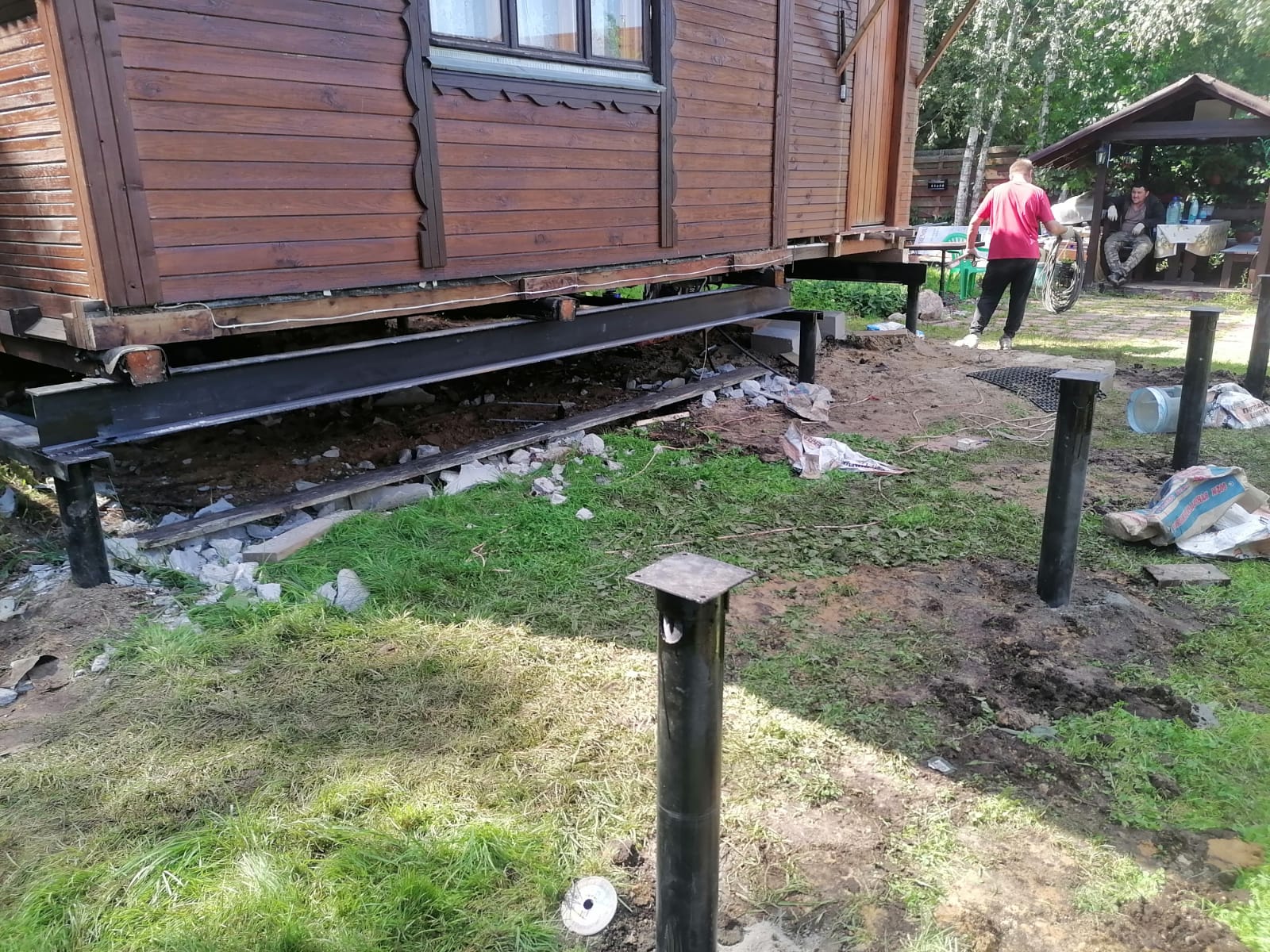 —Заменили старый фундамент на винтовые сваи с двутавровой балкой 200мм
