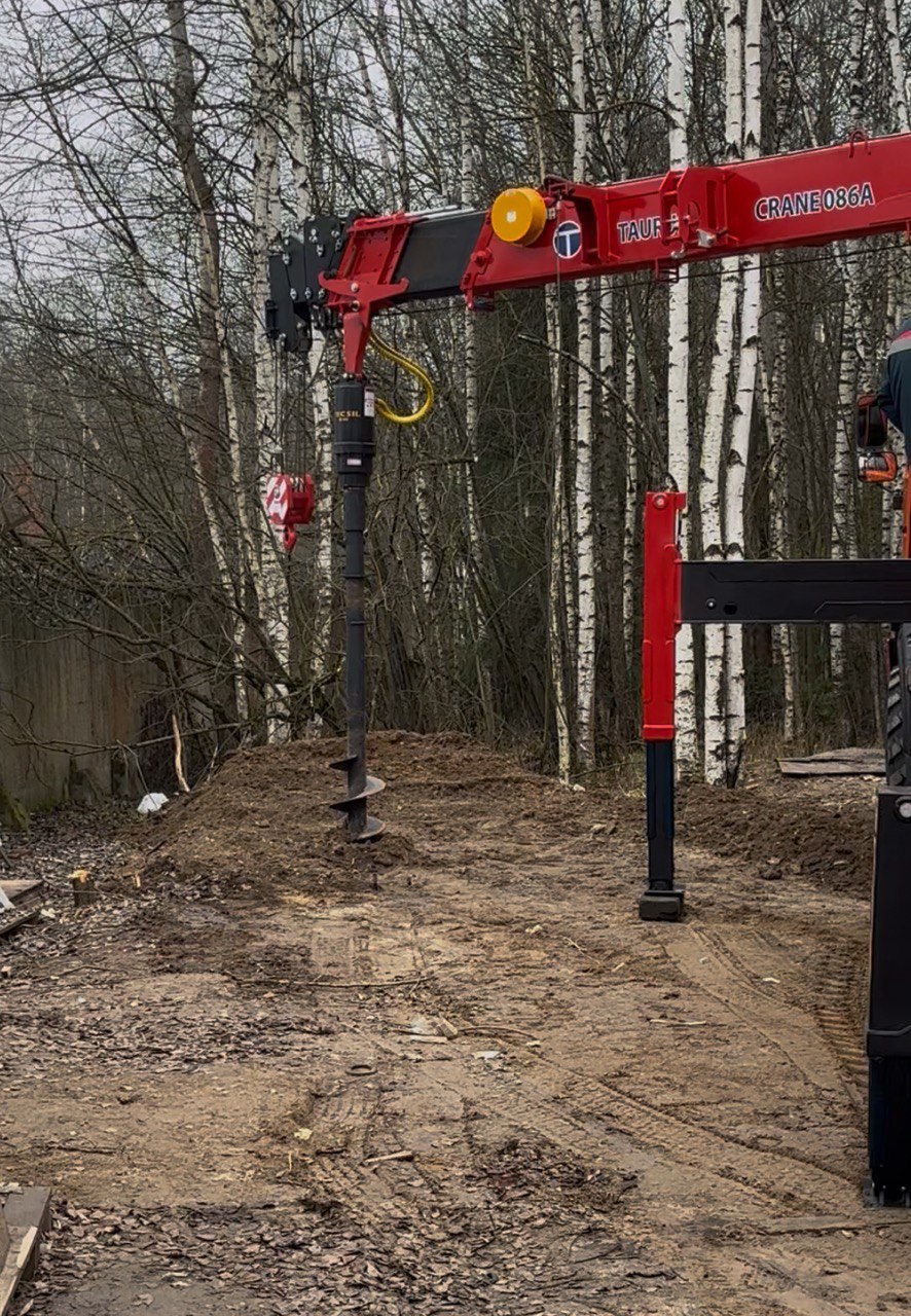 Монтаж винтовых свай спецтехникой в труднодоступных местах в Рузе